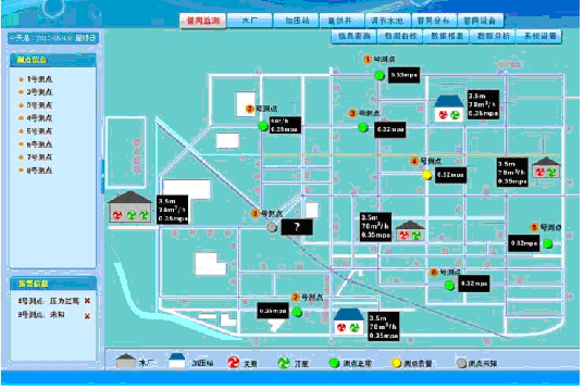 城市供水管網(wǎng)監(jiān)測系統(tǒng)適用于供水企業(yè)遠(yuǎn)程監(jiān)測供水管網(wǎng),工作人員可以在供水公司調(diào)度中心遠(yuǎn)程監(jiān)測全市供水管網(wǎng)的壓力及流量情況?茖W(xué)指揮各水廠啟停供水設(shè)備,保障供水壓力平衡、流量穩(wěn)定;及時發(fā)現(xiàn)和預(yù)測爆管事故的發(fā)生。