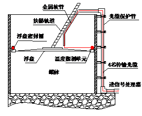 一般情況下,對(duì)灌區(qū)油罐實(shí)行集中監(jiān)控方式,每個(gè)油罐無(wú)論容積大小,均實(shí)行單獨(dú)監(jiān)測(cè)通道實(shí)時(shí)在線溫度檢測(cè)方式,避免同一監(jiān)測(cè)通道監(jiān)測(cè)多個(gè)油罐而造成的許多維護(hù)管理方面的不便,光纖光柵溫度探測(cè)器在油罐上的間隔可以按照3-6米布置,也可以做成雙環(huán)布設(shè),采用專用夾具將光纖光柵溫度探測(cè)器布設(shè)在浮盤/浮船擋油槽的密封圈附近,然后通過光纖/光纜把探測(cè)器串連起來(lái),接入到控制室的信號(hào)處理器,通過信號(hào)處理器對(duì)采集到的信號(hào)進(jìn)行解調(diào),測(cè)量出現(xiàn)場(chǎng)溫度的實(shí)際情況,并將相關(guān)的信息傳遞到中央控制室。