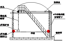 外浮頂油罐主要是以儲(chǔ)存原油為主,體積較大,必須設(shè)置火災(zāi)報(bào)警系統(tǒng)。在外浮頂儲(chǔ)罐上,一般采用專用夾具將光纖光柵感溫火災(zāi)探測(cè)器布設(shè)在浮盤/浮船密封圈附近。光纖光柵探測(cè)器使用傳輸光纜連接,在儲(chǔ)罐內(nèi),傳輸光纜沿滑梯敷設(shè),并垂落至浮盤處與光纖光柵探測(cè)器連接。其中滑梯至罐底浮盤處的傳輸光纜采用防爆撓線管敷設(shè)。